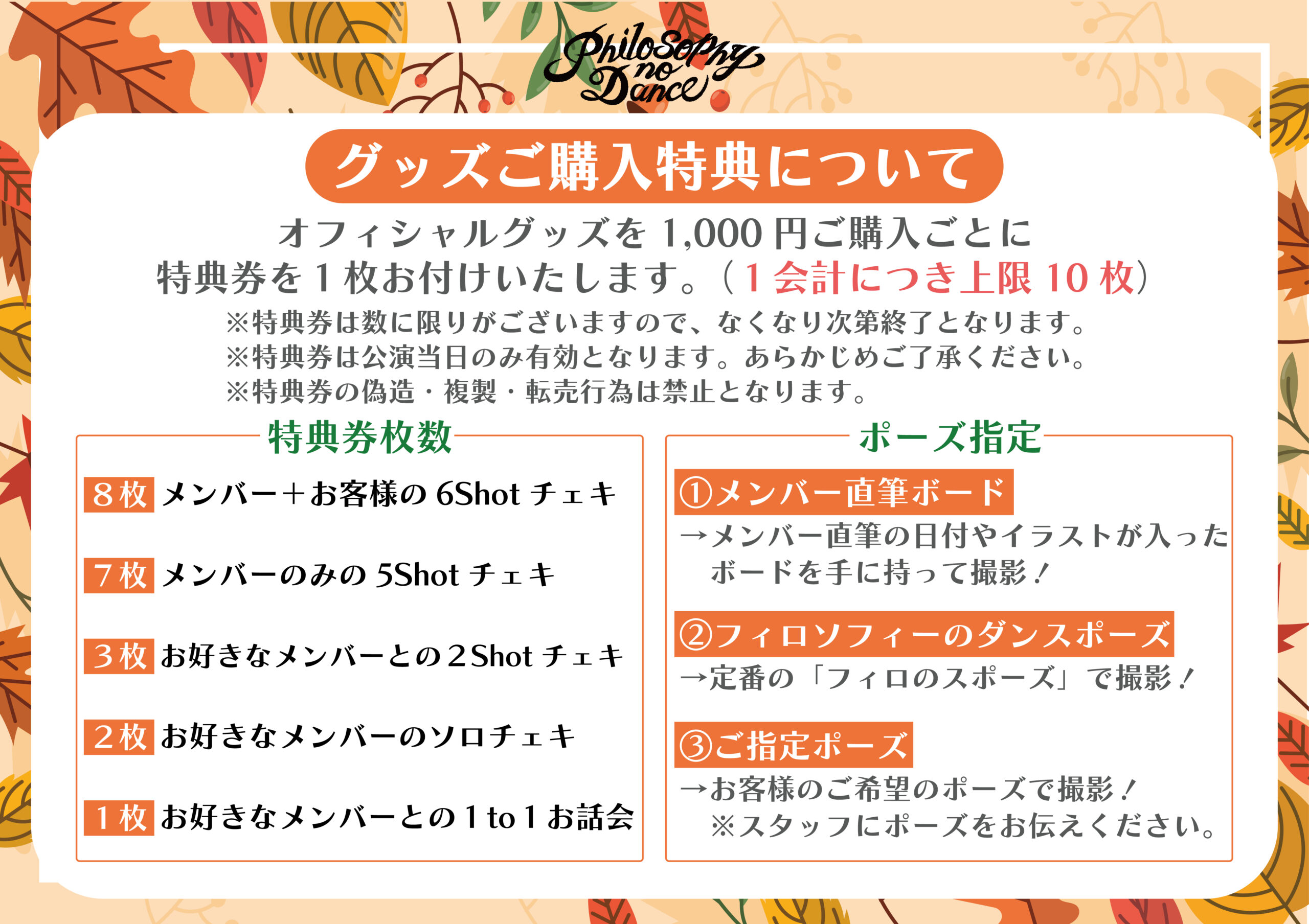 物販にてグッズを1,000円分ご購入につき特典券1枚お渡しいたします。