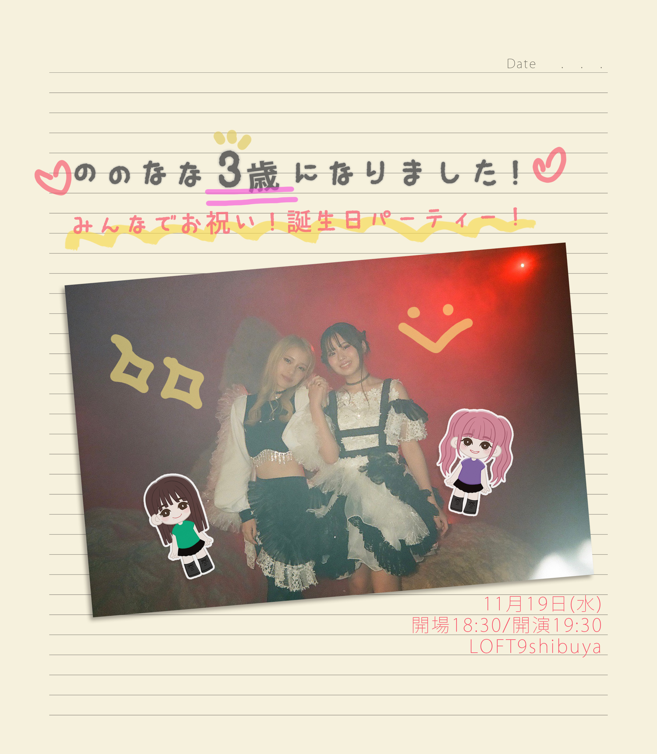FC会員限定トークイベント「ののなな3歳になりました!みんなでお祝い!誕生日パーティー!」開催決定!