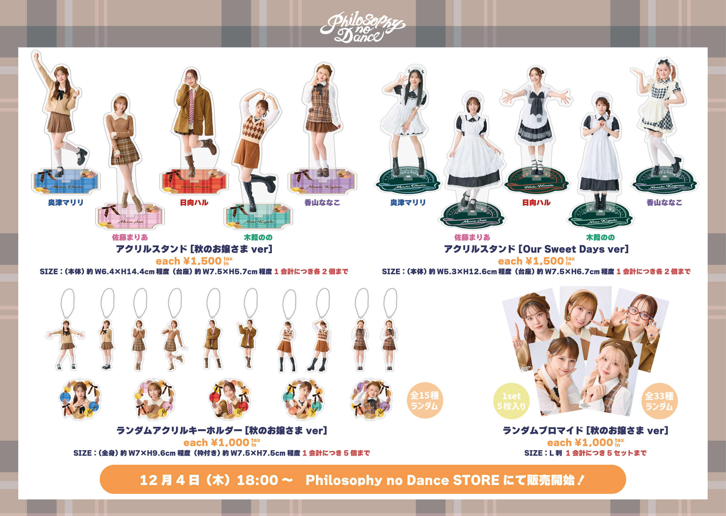 フィロソフィーのダンスSTOREにて11月FCイベントから販売開始した「秋のお嬢さまver.」グッズと「コラボカフェ~Our Sweet Days~」で販売した新グッズの通販が決定いたしました!