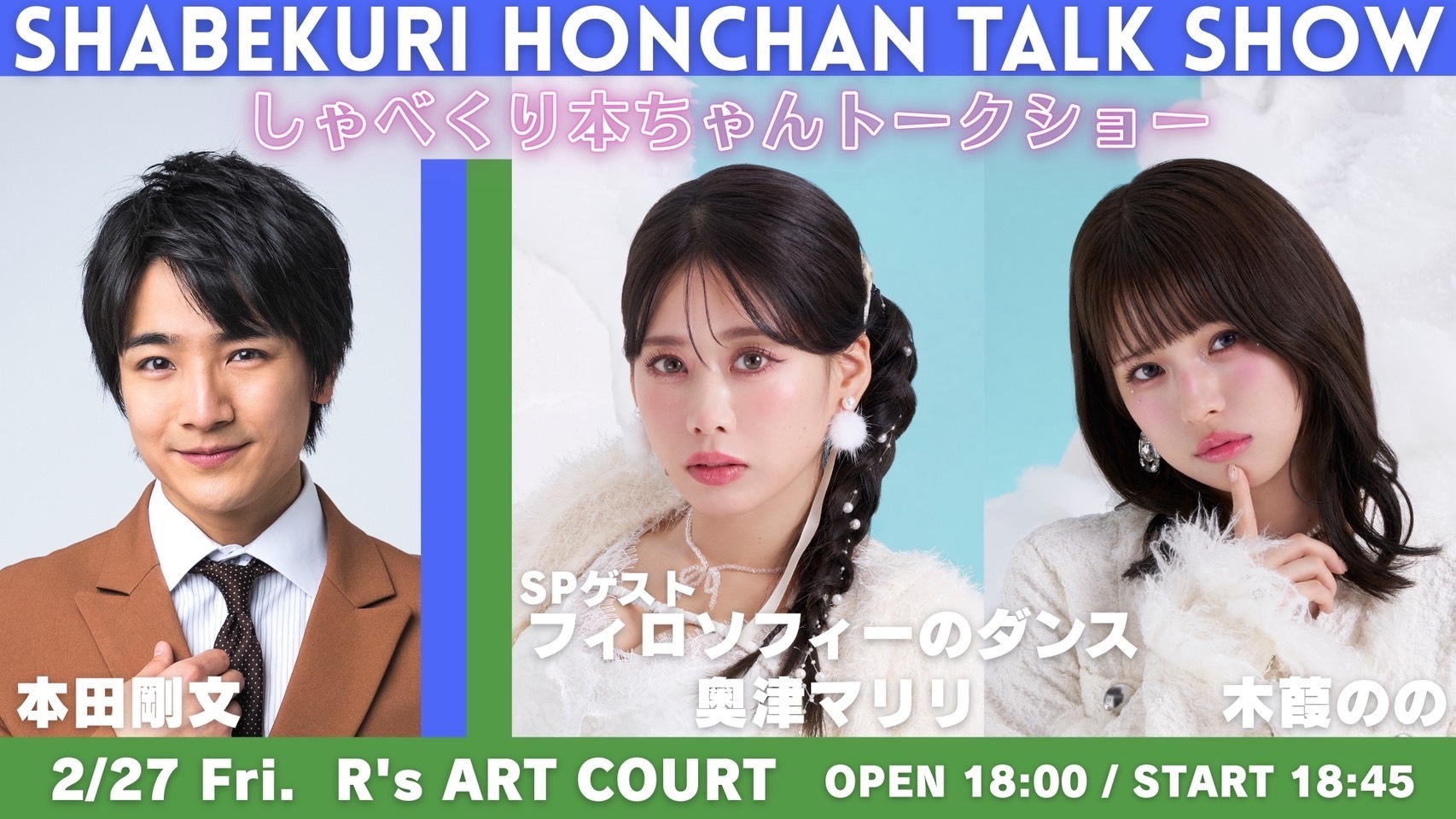 2月27日(金)奥津マリリ・木葭のの「しゃべくり本ちゃんトークショー」への出演が決定いたしました!